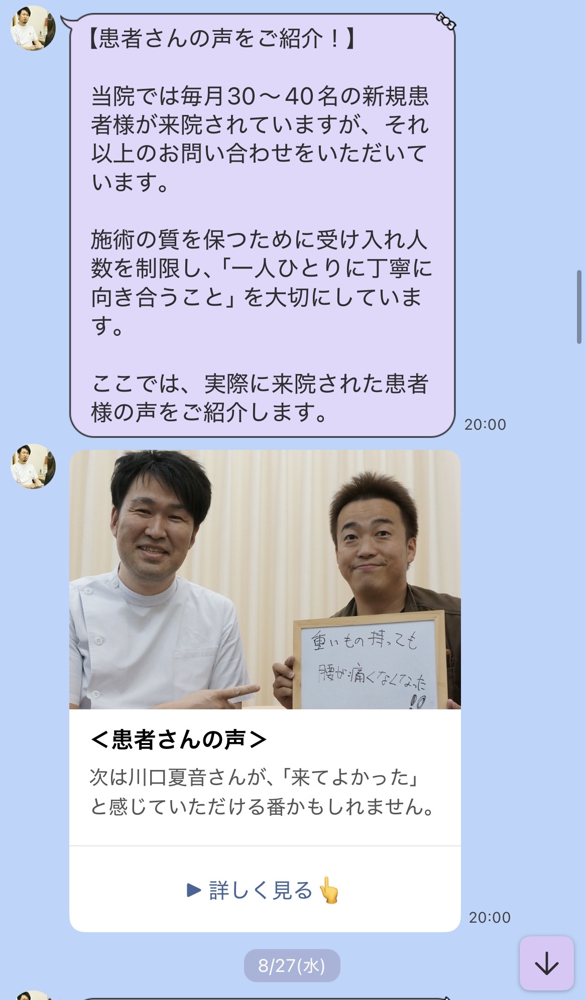 患者の許可を得て、具体的な症例を紹介することが信頼向上につながる。実際に良かったという患者さんの体験談(写真付きが望ましい)をシェア。安心感を与える。